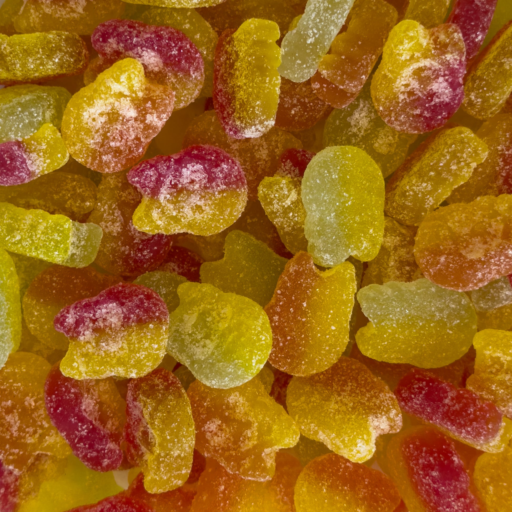 A bold little mix of sour fruit skulls with a chewy foam bite. Tart, punchy, and packed with split personalities. Perfect for birthday chaos - or to liven up a boring meeting. 100% vegan and bite-sized for any mood