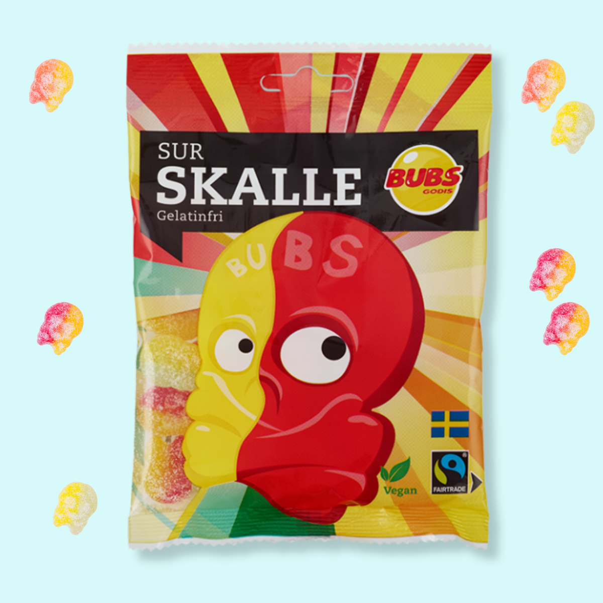 A bold little mix of sour fruit skulls with a chewy foam bite. Tart, punchy, and packed with split personalities. Perfect for birthday chaos - or to liven up a boring meeting. 100% vegan and bite-sized for any mood